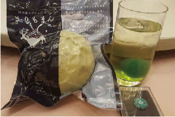 2018年、菓子処松屋(釧路市阿寒町)とのコラボ商品として「まりもなか」を販売開始。緑色の丸い最中に老舗菓子店である松屋特製のあんこがたっぷり。